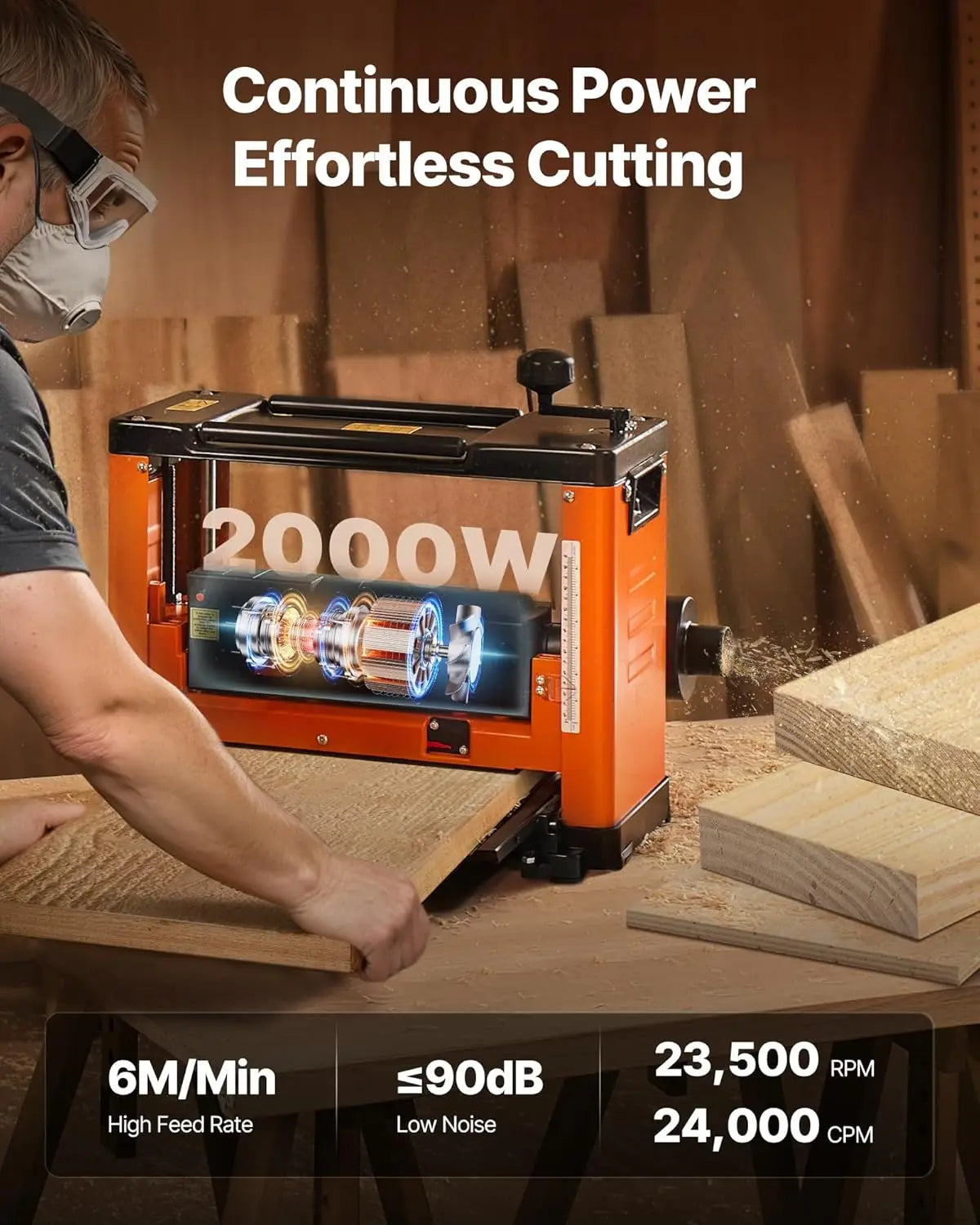 - Powerful 2000W motor reaches up to 24,000 CPM, letting you plane oak, maple, and other hardwoods with ease for a clean, uninterrupted cut.