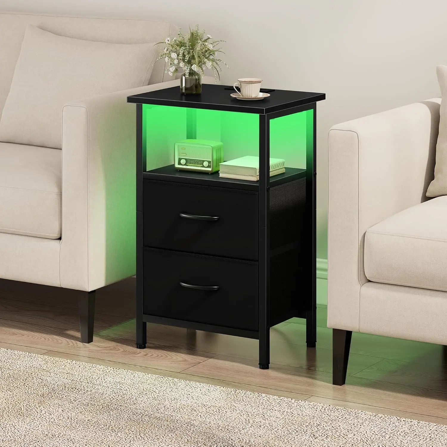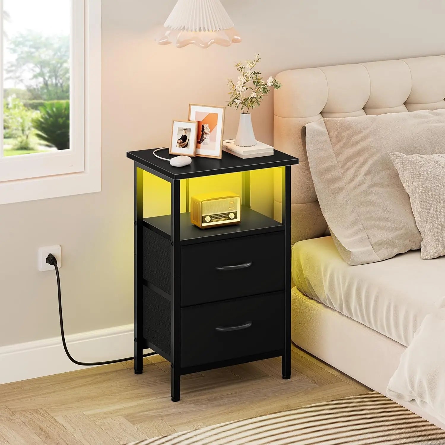 Elevate your bedroom with a 2-Piece Nightstand Set that blends modern LED ambiance, practical charging, and smart storage in one compact design.