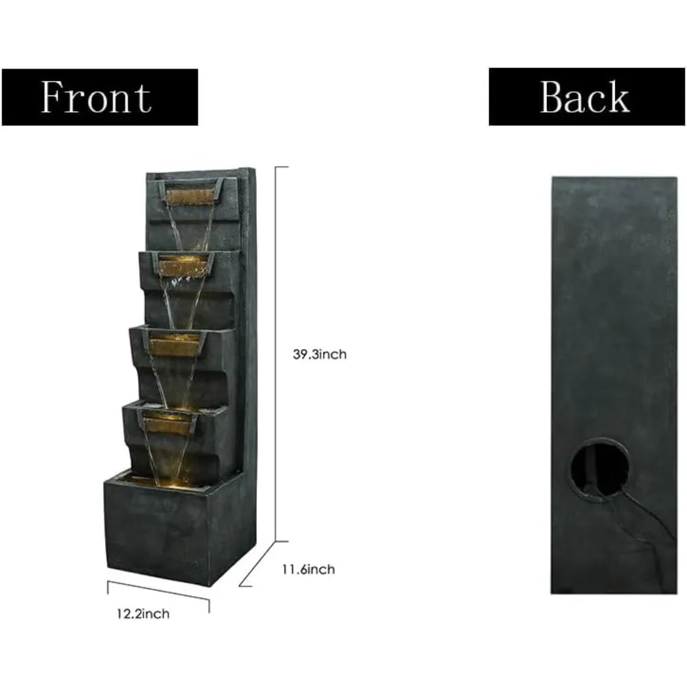- Five cascading tiers create a relaxing water flow you can enjoy up close, while the integrated LED lighting adds soft, ambient glow after dusk.