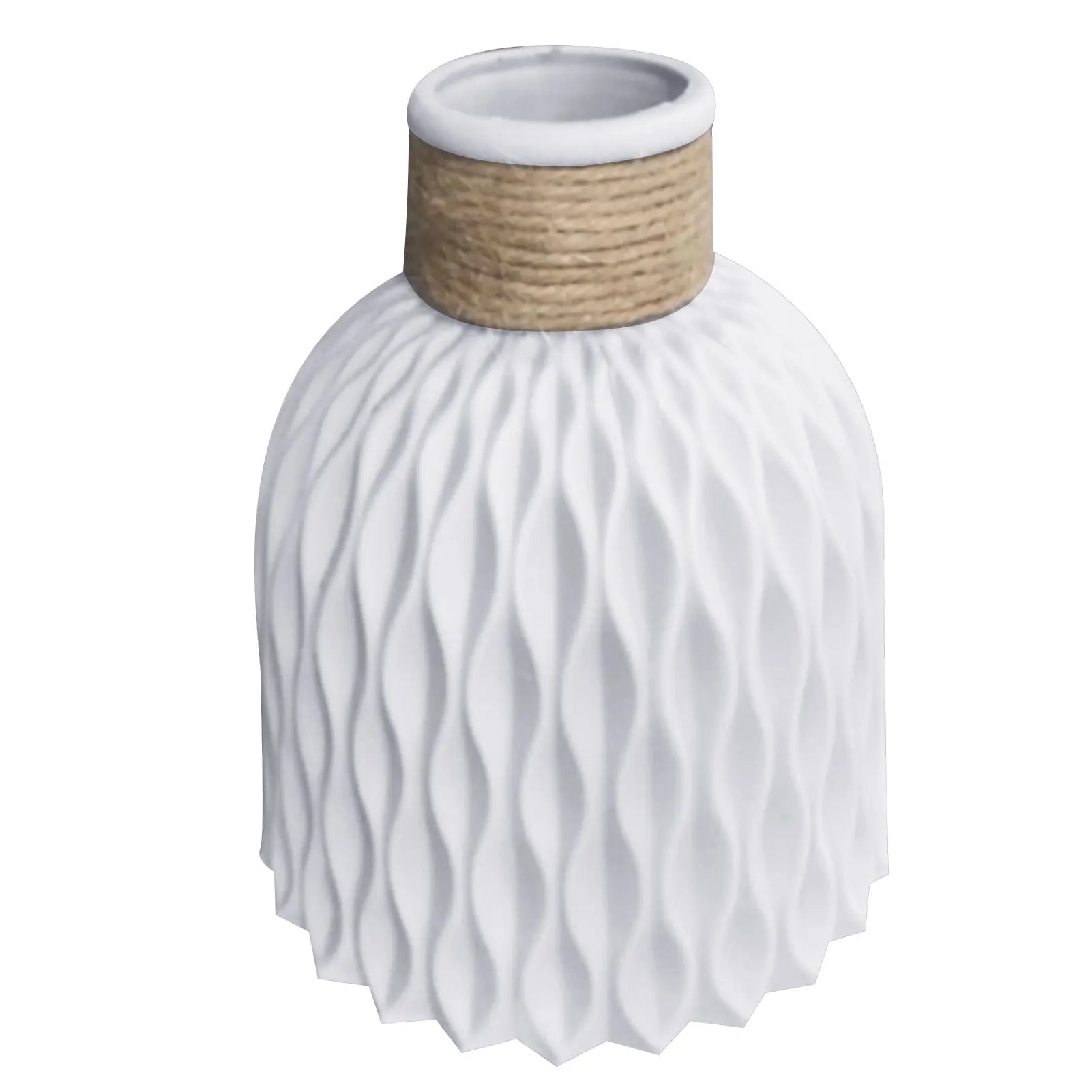 You elevate your space with the Hignconcerned 3pc Plastic Vases Set—unbreakable, lightweight, and stylishly striped with cotton rope details, designed for modern decor.