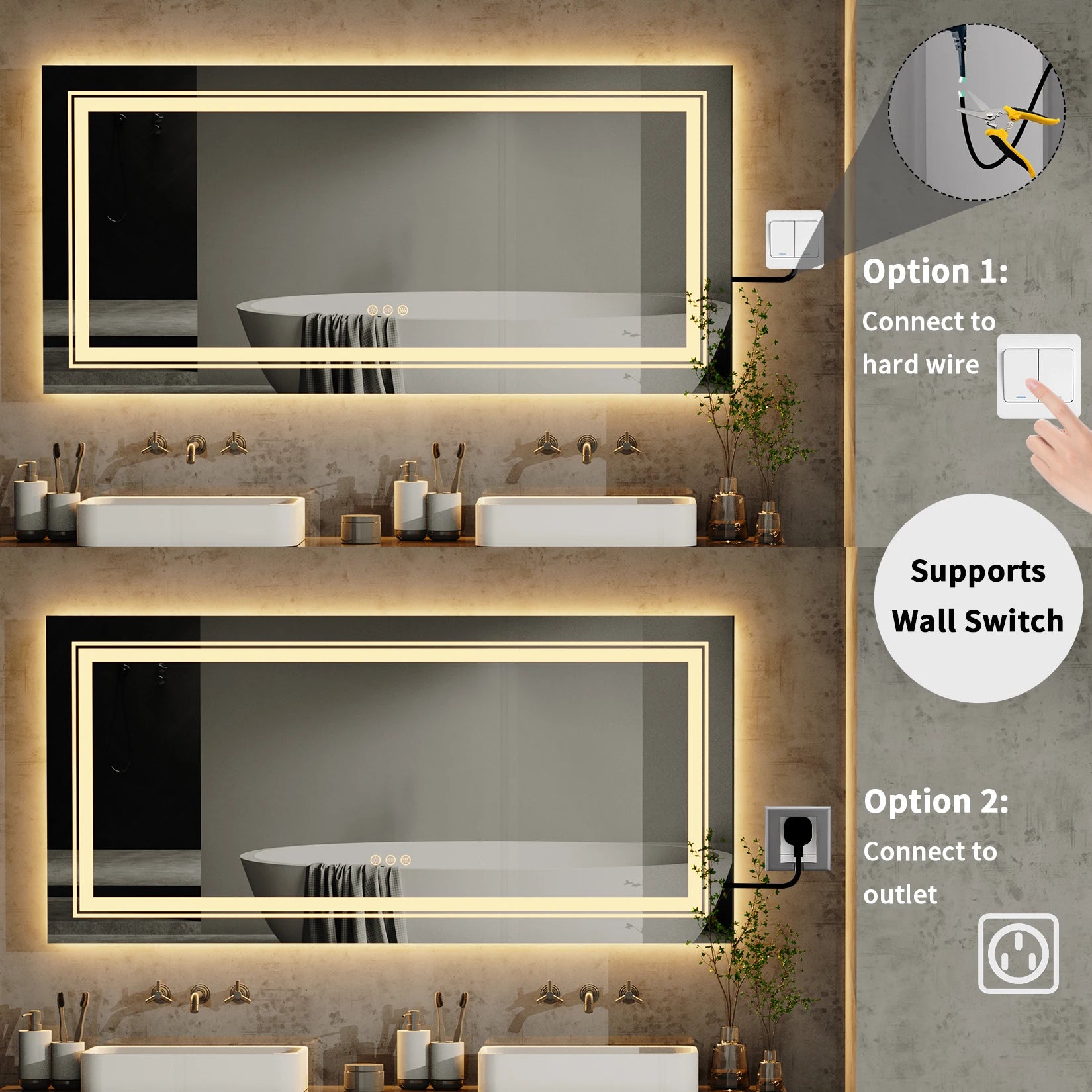 Elevate your daily routine with the Wisfor LED Bathroom Mirror—anti-fog, dimmable illumination in a sleek frameless rectangle that brings modern style and practical brilliance to your bathroom.