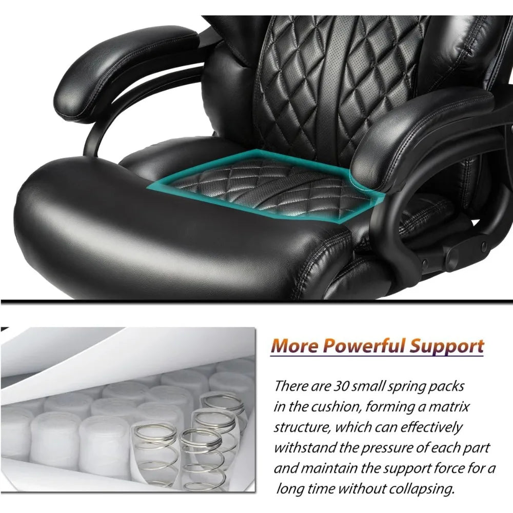 - Ultra-strong, oversized design supports up to 500 lbs so you can sit comfortably for hours, with a memory-foam seat and leather upholstery for lasting comfort.
