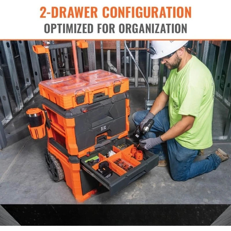 - Large-capacity lower drawer fits bulky power tools, while the compact upper drawer keeps drill bits, screws, nuts, and small parts neatly within reach, reducing searches and wasted time.