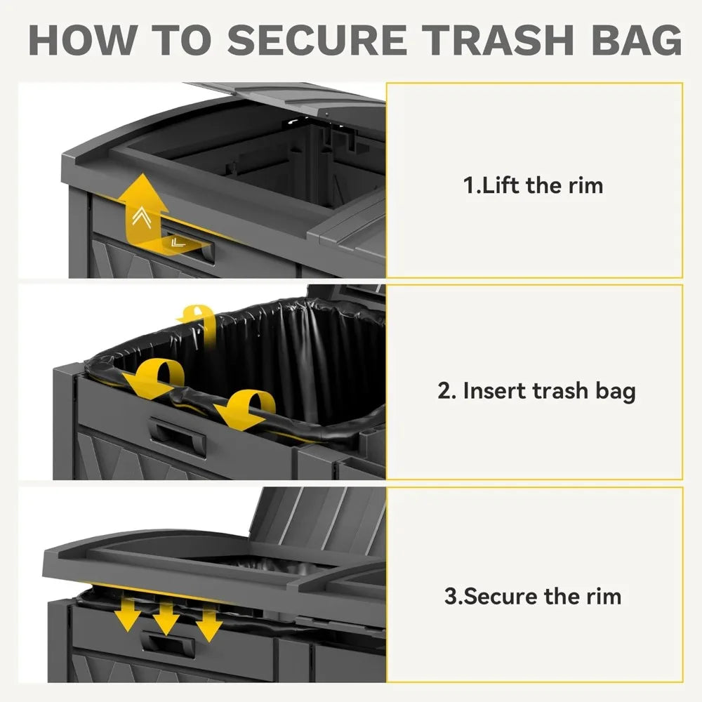 - Double-bin design lets you separate waste and recyclables at the source, reducing trips, limiting cross-contamination, and keeping your outdoor spaces impressively tidy.