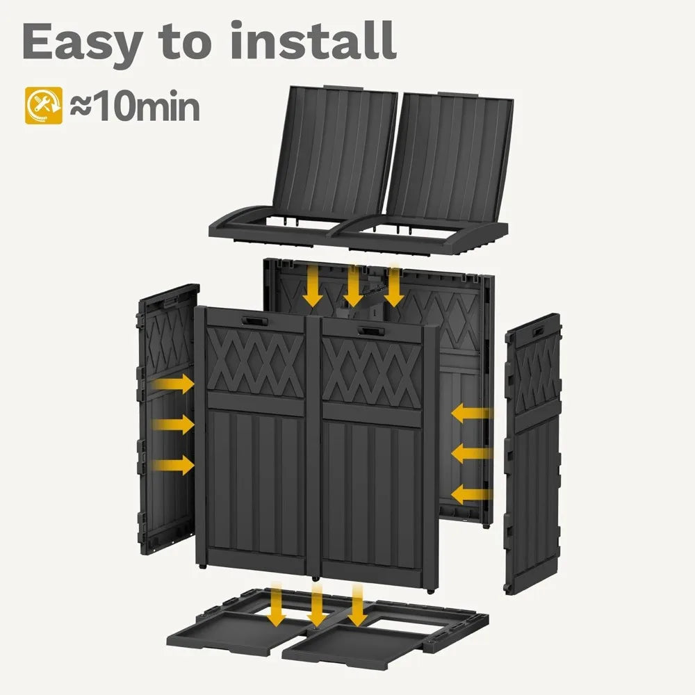 Tidy your outdoor spaces with effortless organization using this 66 Gallon Double Bin Outdoor Trash Can in black.