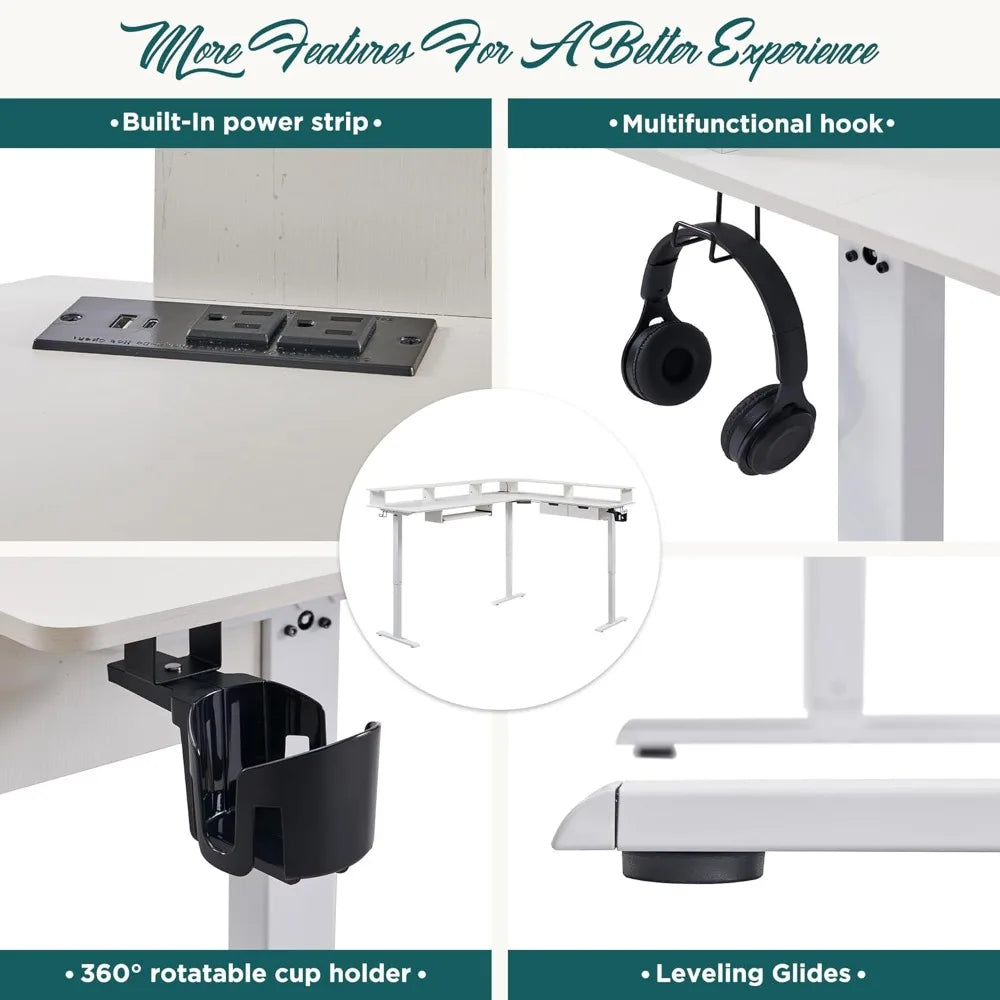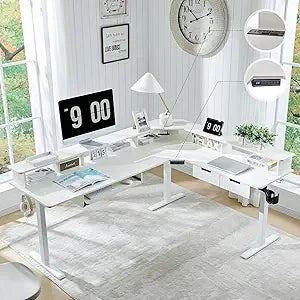 Upgrade your workspace with the ZHIYONG L Shaped Electric Standing Desk with Drawers, delivering ergonomic comfort, space-saving design, and effortless height control.