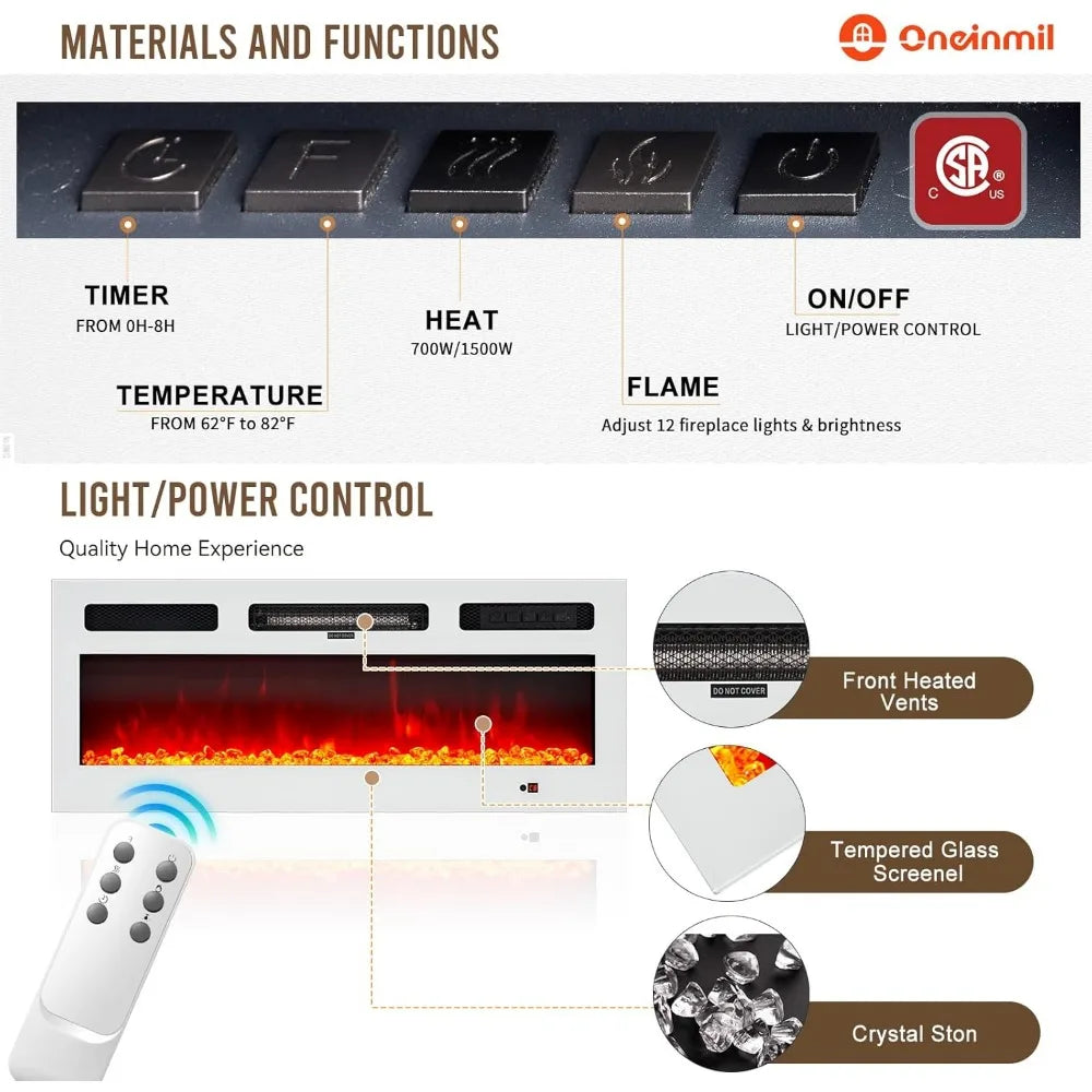 - Integrated 36-inch electric fireplace with LED lighting delivers a realistic flame effect and cozy warmth to enhance your movie nights.