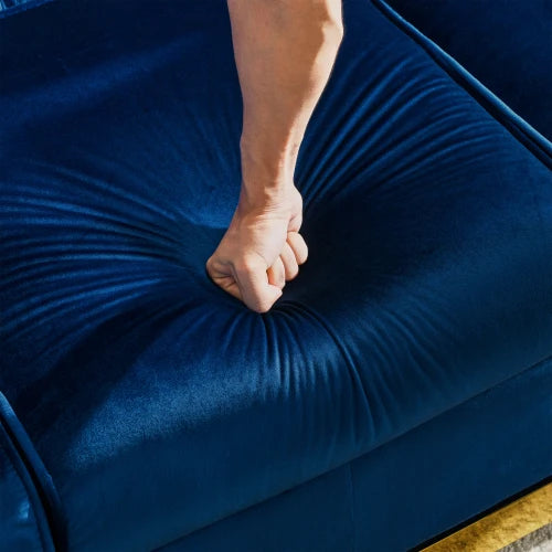 Elevate your living room with this velvet Chesterfield sofa, where classic tufting meets luxe gold accents.