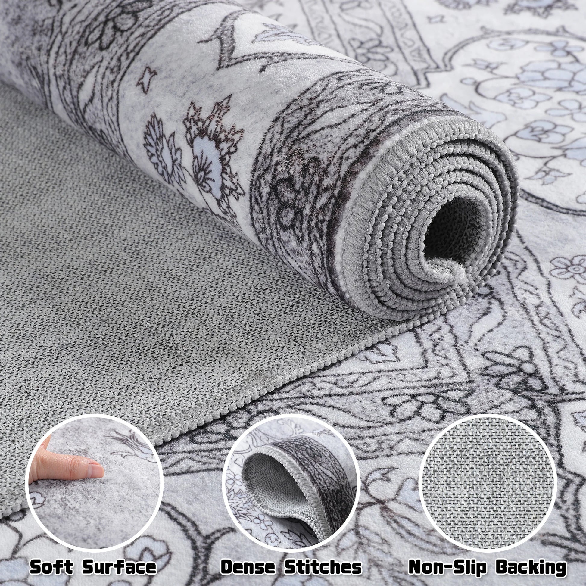 - With a traditional floral design in an endless motif, this rug offers versatile appeal for your living room, bedroom, or hotel, pairing easily with hardwoods or tiles and complementing neutral palettes.