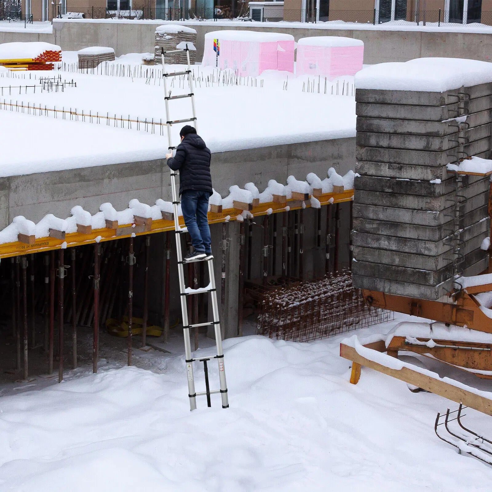 Reach higher with confidence using this 6.2m aluminium telescopic ladder with detachable hooks—designed for you to achieve smooth, secure performance in tight spaces.
