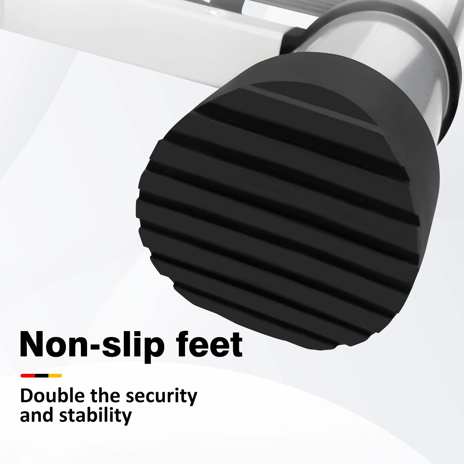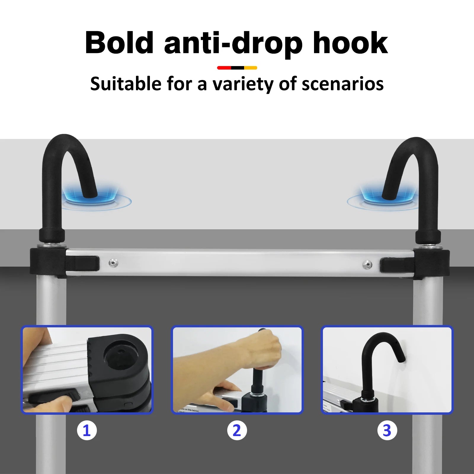 - Equipped with non-slip rubber feet for your stability and a sturdy locking mechanism between rungs to prevent bumping; detachable hooks add versatile reach.
