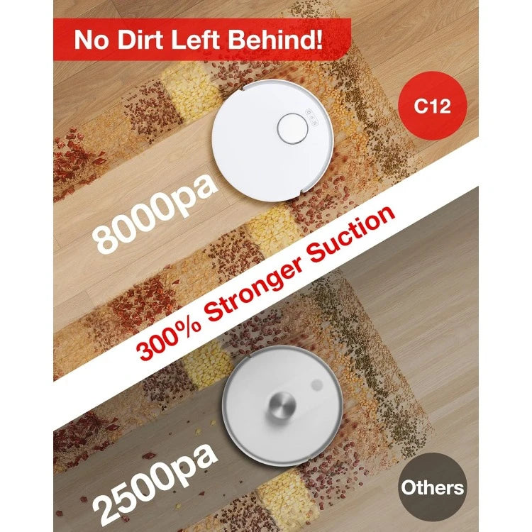 Meet your effortless clean with the Hign-concerned C12 Robot Vacuum and Mop, delivering 8000Pa suction and smart navigation for a spotless home, engineered for effortless maintenance.