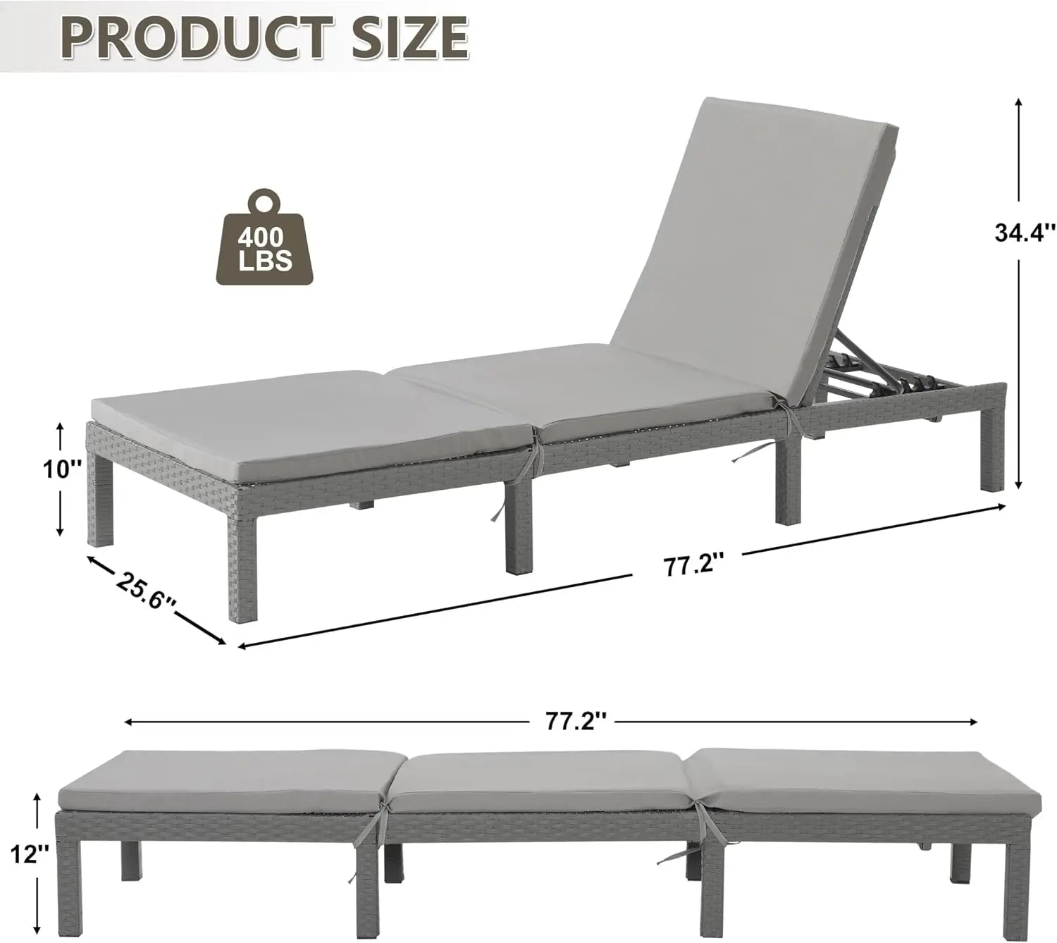 - Sturdy steel frame wrapped in polyester rattan delivers lasting beauty and a stable base that supports up to 400 pounds, with dimensions of 77.2" L x 25.6" W x 12" H.