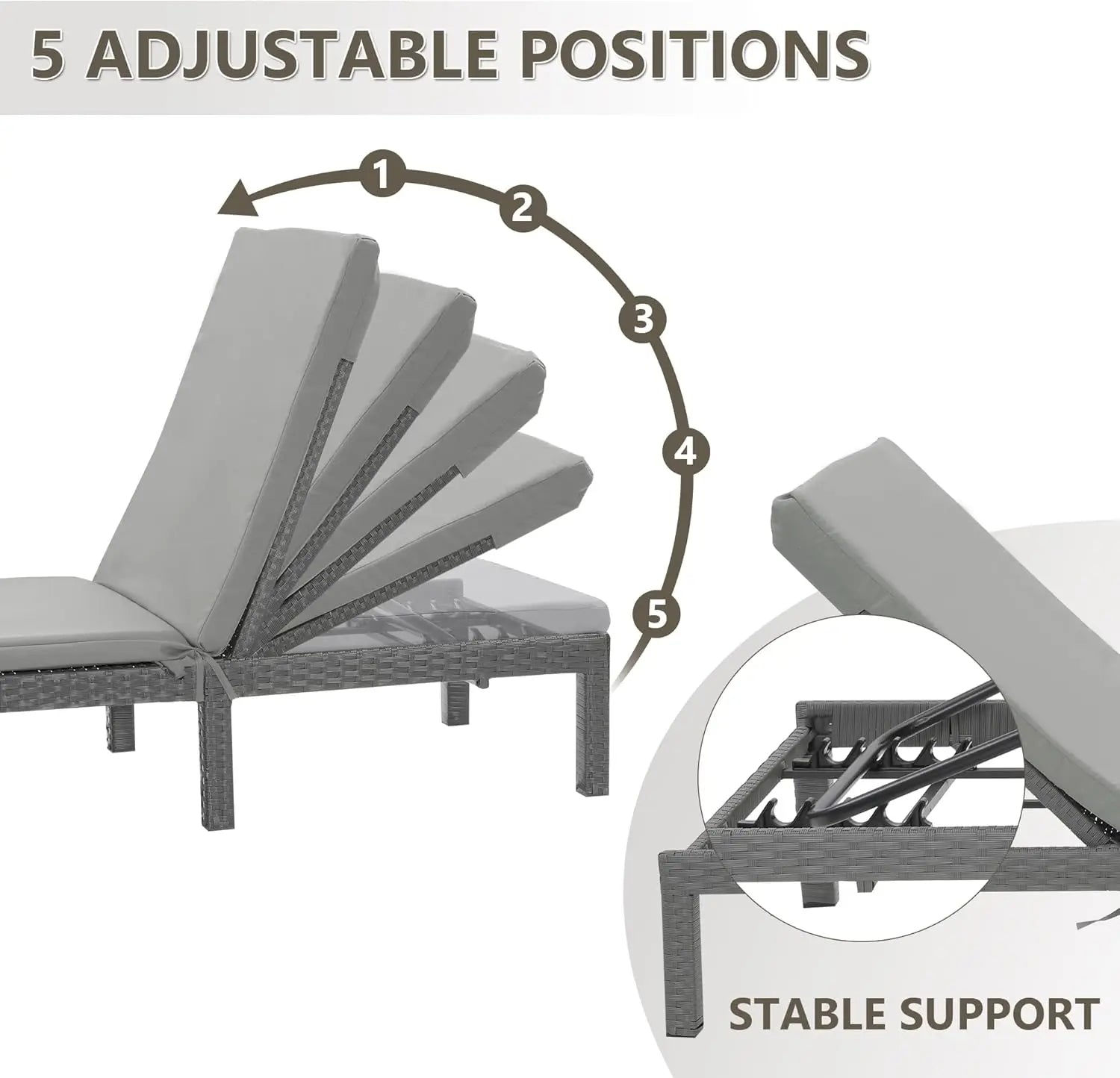 Relax in style with the XMSJ Outdoor Chaise Lounge Chair, a versatile poolside companion with five adjustable backrest angles.