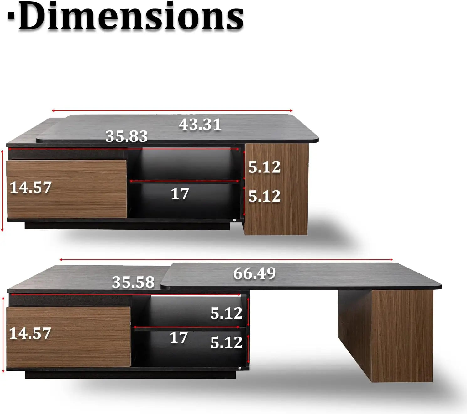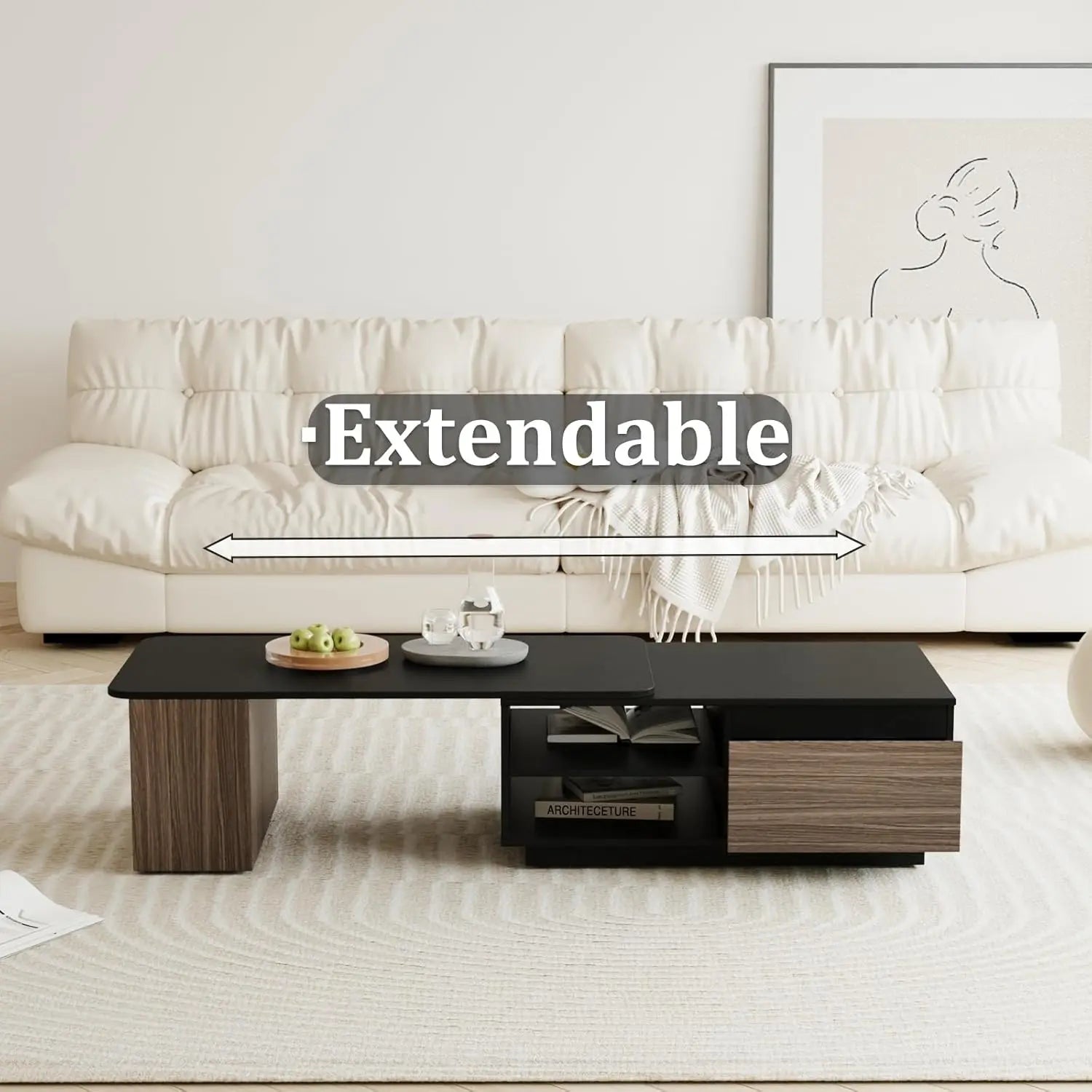 XMSJ Extendable Coffee Table With Drawer Mid Century Modern