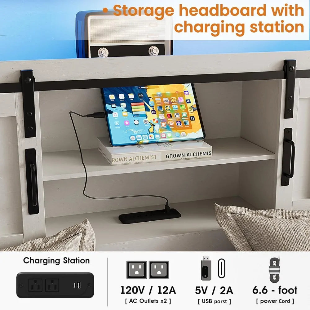 DAFIFY Farmhouse Queen Bed Frame With Headboard And Storage
