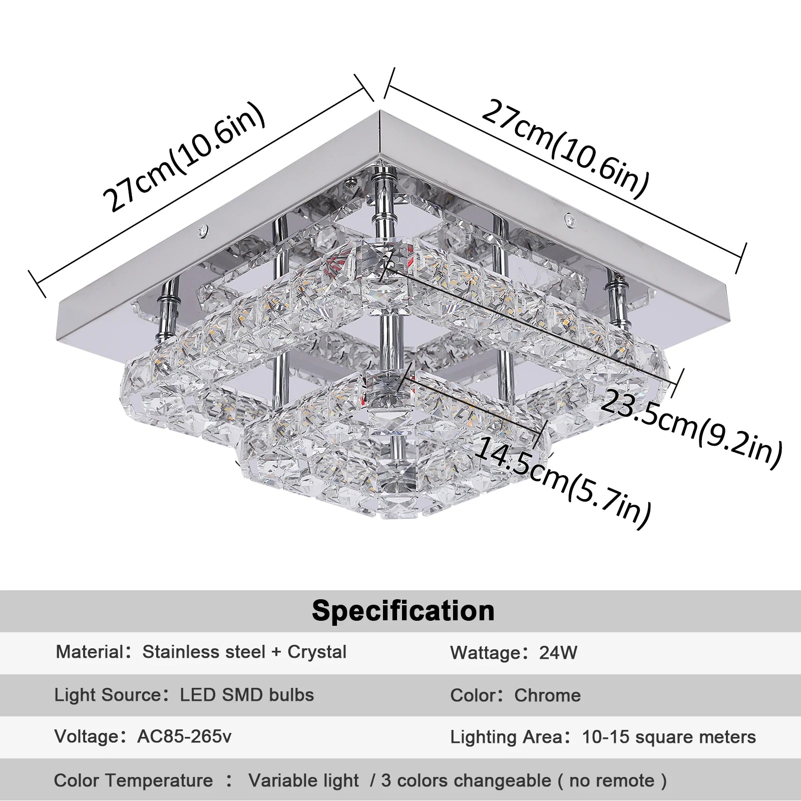 - Flush-mount design measures Dia 50 cm by H 24 cm for a bold presence in living rooms, dining areas, and foyers; assembly required.