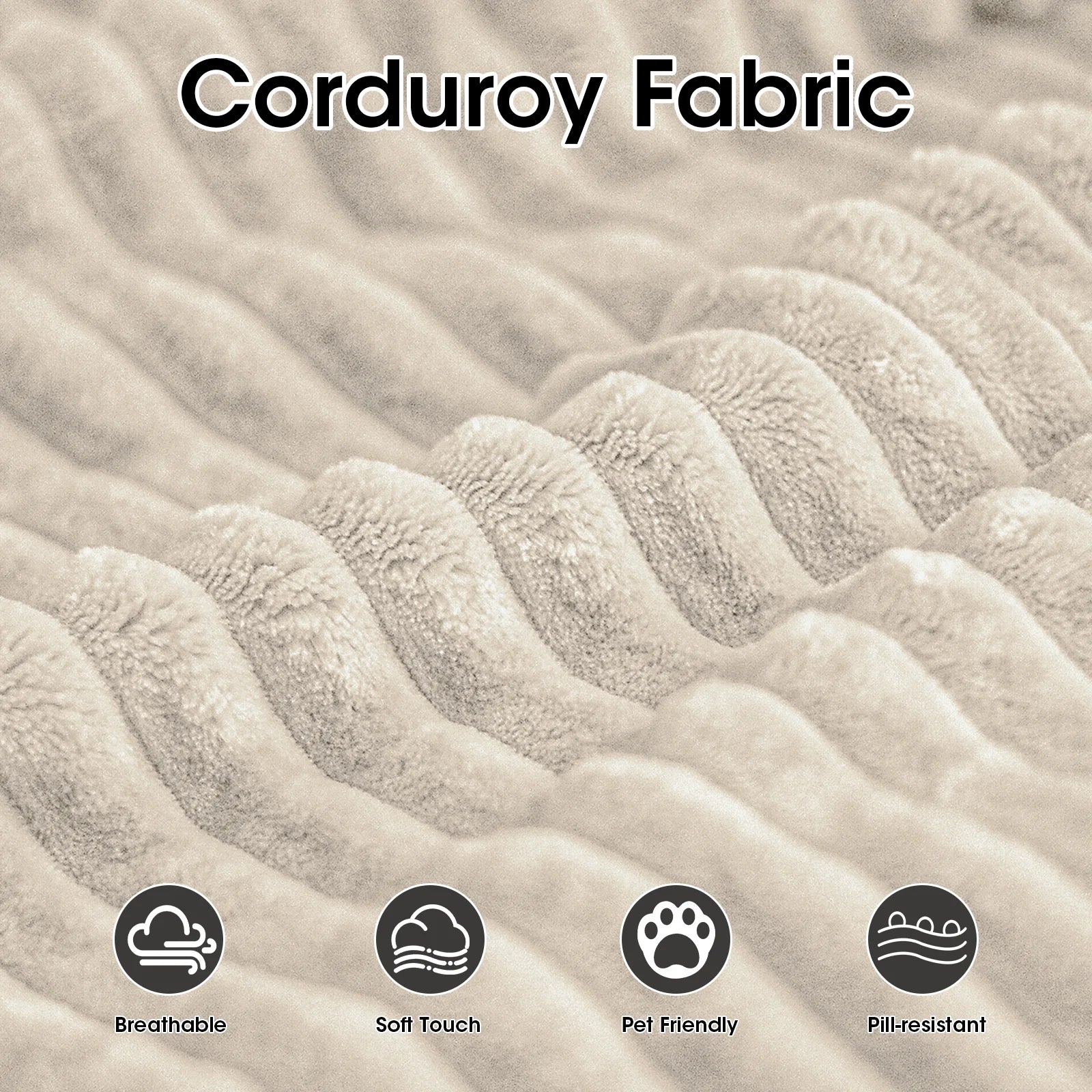 - Corduroy upholstery with memory foam cushions provide plush, supportive seating that keeps its shape for you over time, while a breathable fabric keeps you comfortable during long sessions.
