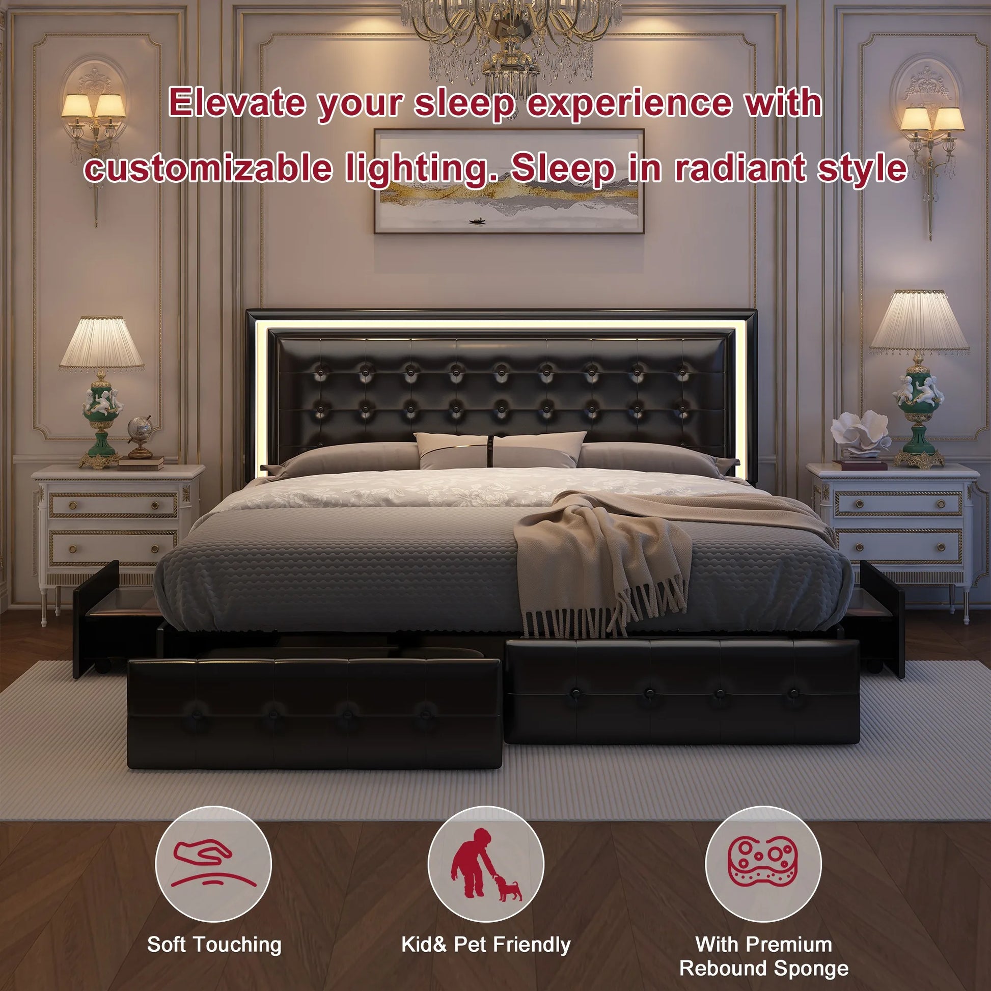 GEGOFORU Queen LED Bed Frame With 4 Storage Drawers Headboard