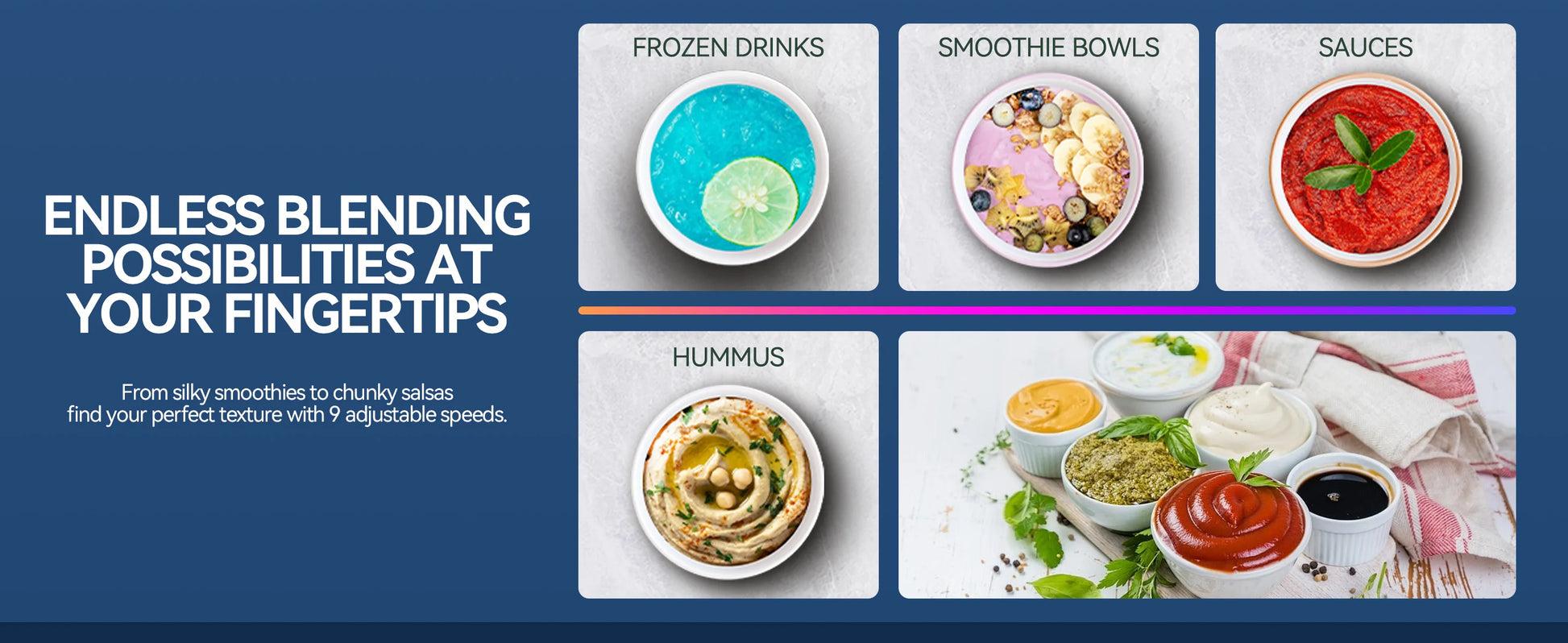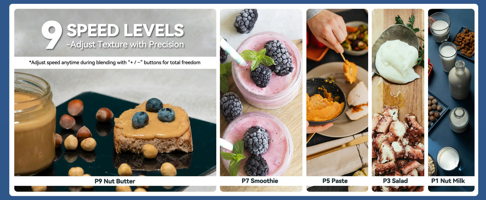 - Nine adjustable speed levels (P1–P9) let you dial from gentle stirring to powerful grinding, and the included tamper helps push dense ingredients toward the blades for smooth results.