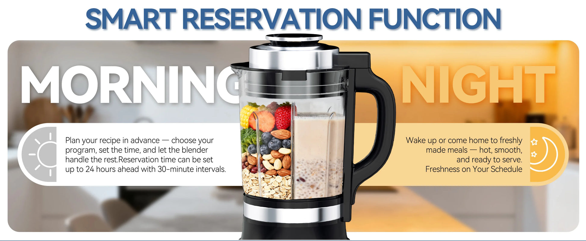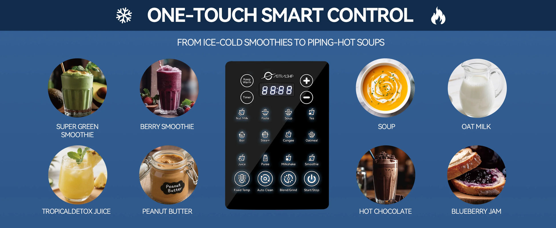 - 14 one-touch presets cover smoothies, oatmeal, soups, sauces, nut butters, and more, with a built-in timer for delayed starts on hot programs.