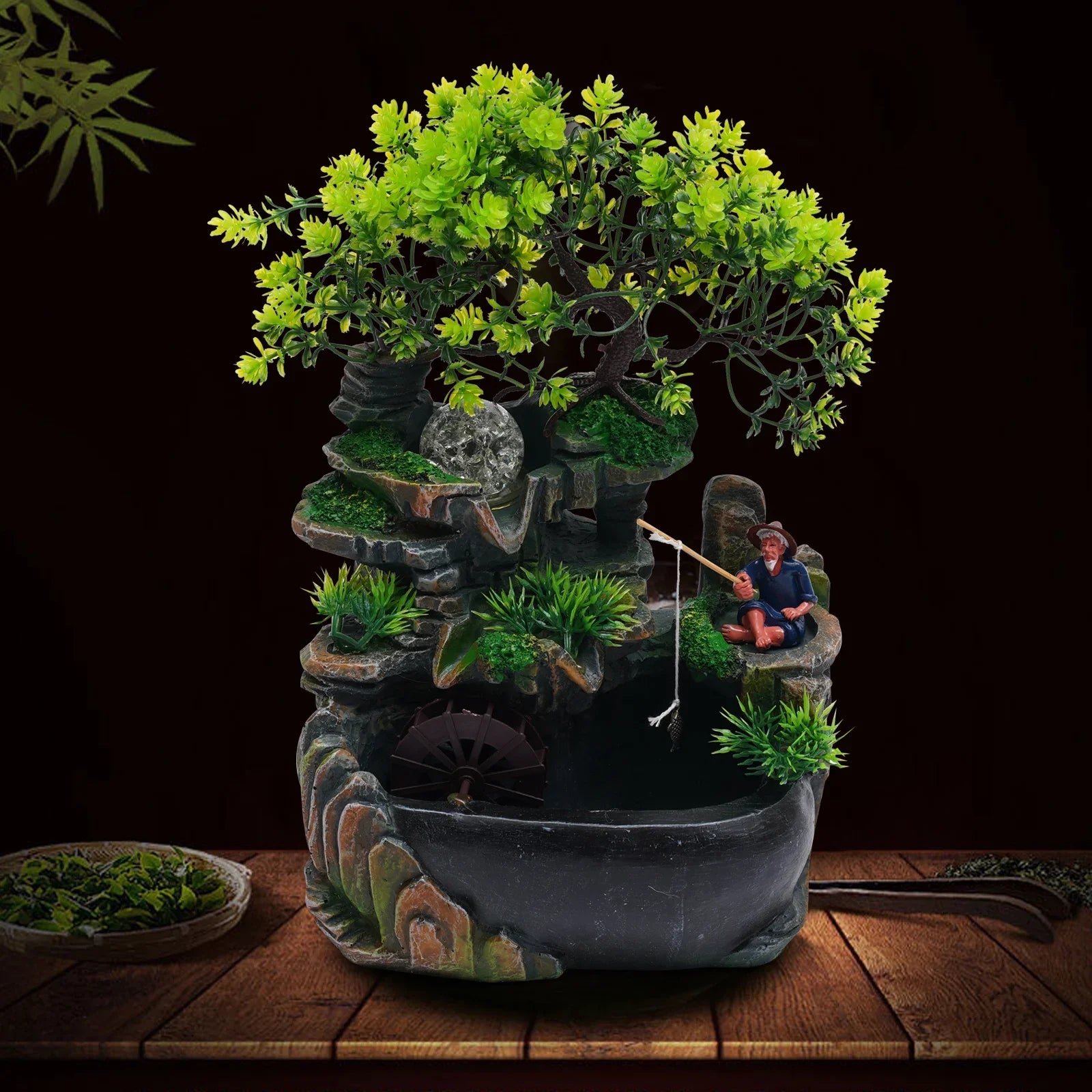 Transform your space with a tranquil, LED-illuminated resin tabletop fountain that brings gentle motion and calm into any room, instantly elevating your decor.
