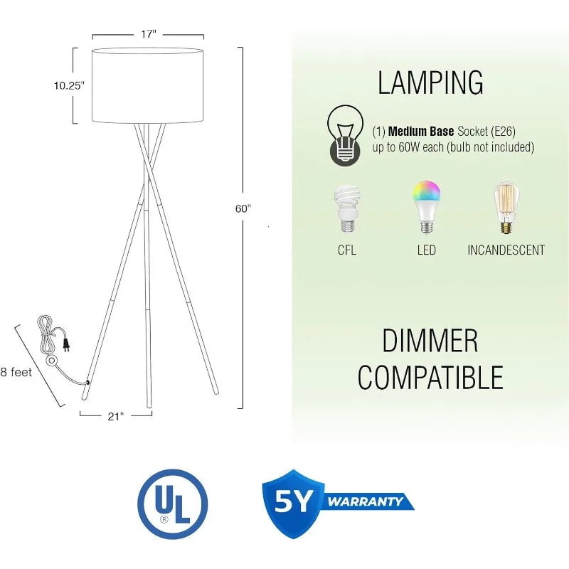 Kira Home Sadie Mid Century Tripod LED Floor Lamp Accent