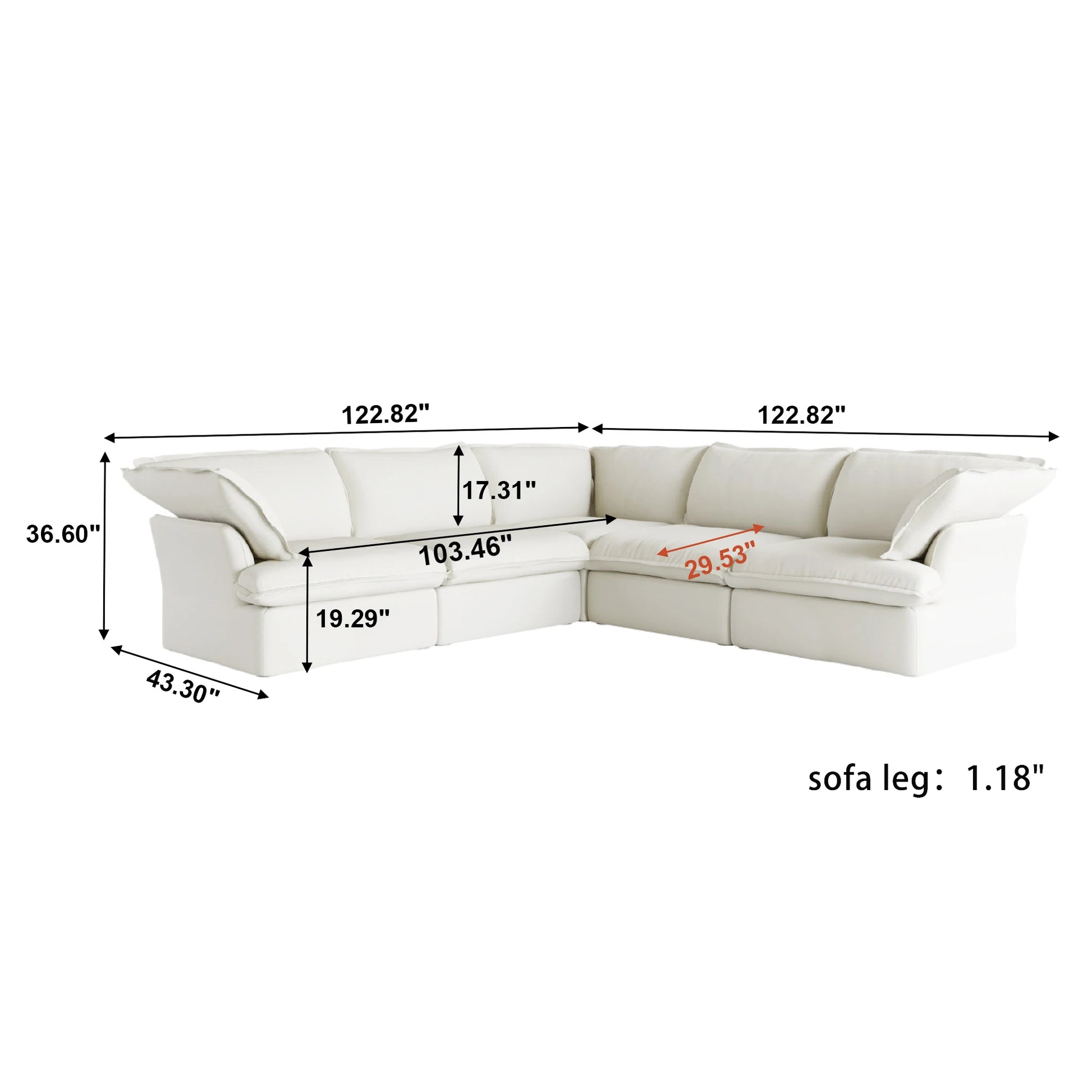 SdorensCN L Shape Corner Sectional Sofa Modular Down Fill Convertible