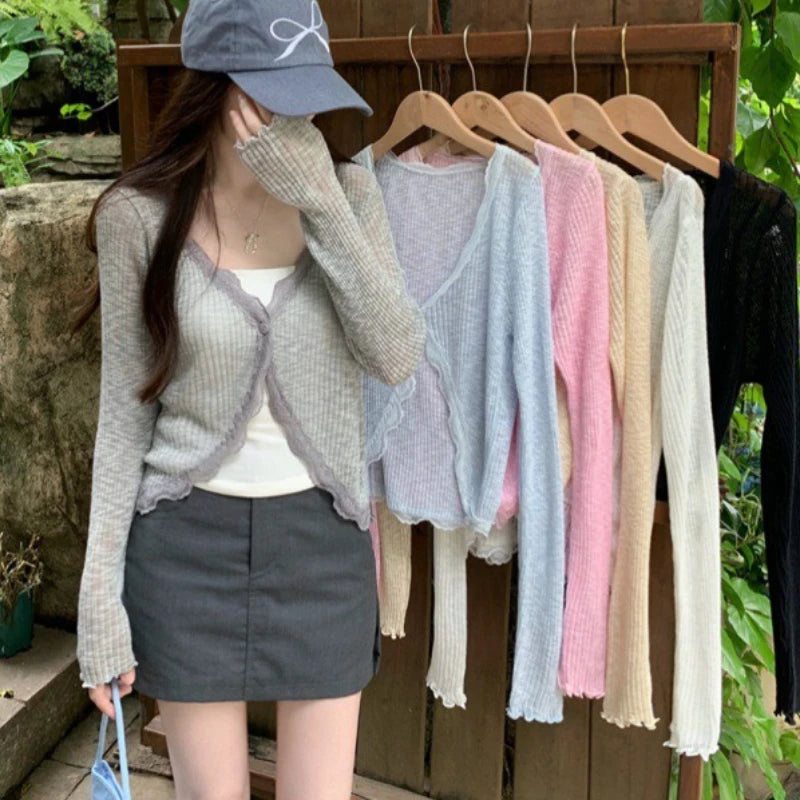 Wade into effortless chic with the Dawndesslo Lace Trim Open Front Knit Cardigan, your go-to layer for spring and summer.