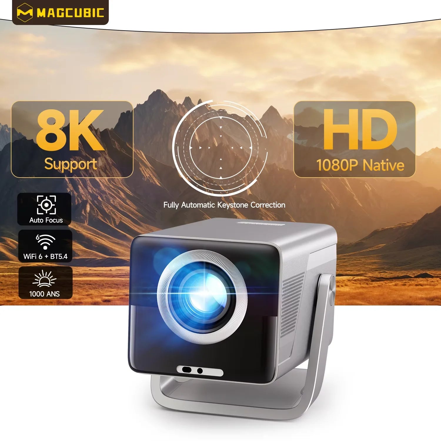 Turn any space into a cinematic home theater with the Magcubic 8K Compatible Home Theater Projector—Android 14, Wi‑Fi 6, and true 1080p clarity with 8K video support.