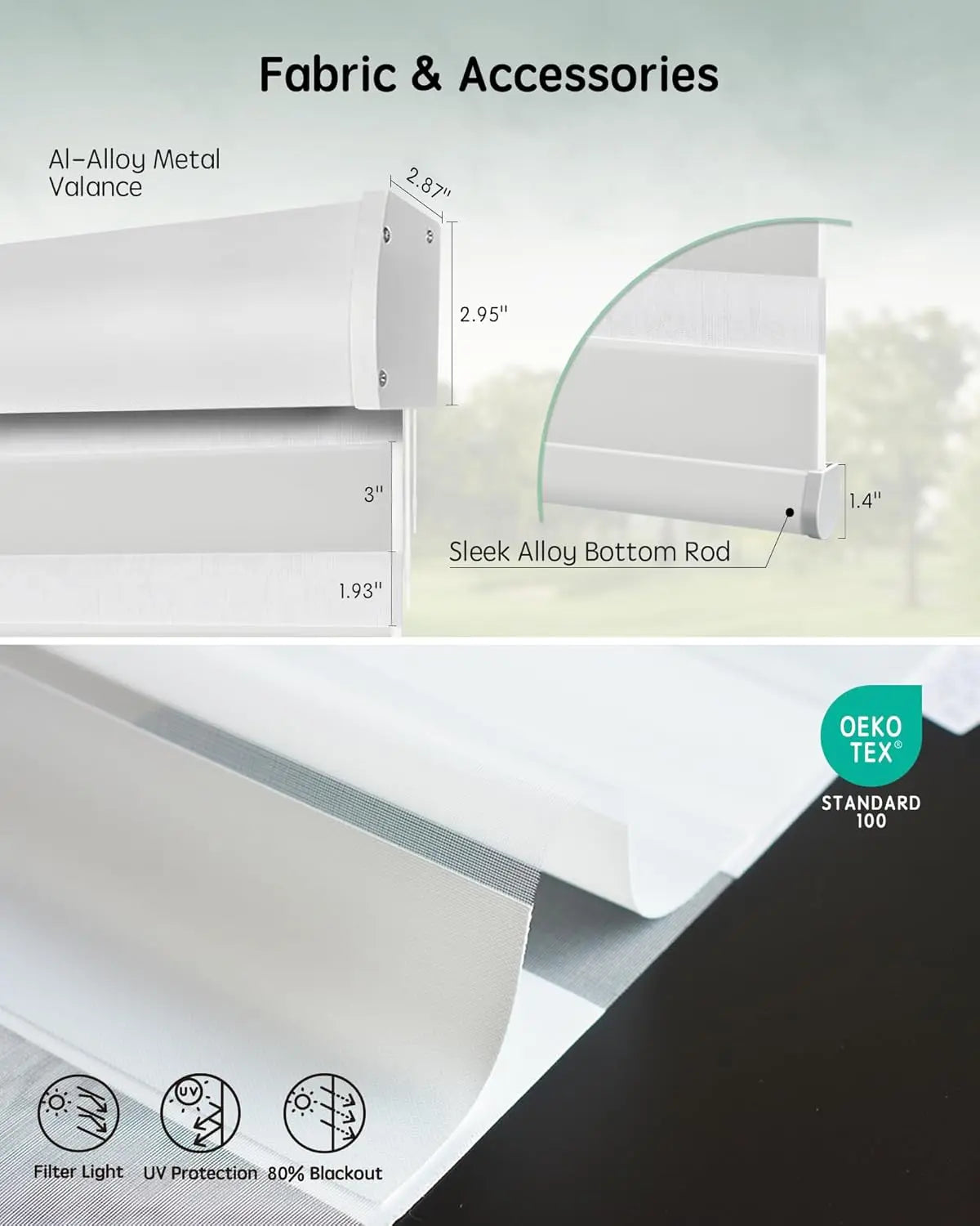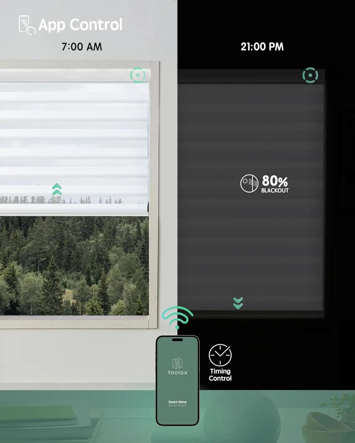 - Dual-layer zebra design for precise shading — Easily switch between sheer and blackout patterns to manage glare and privacy throughout the day.