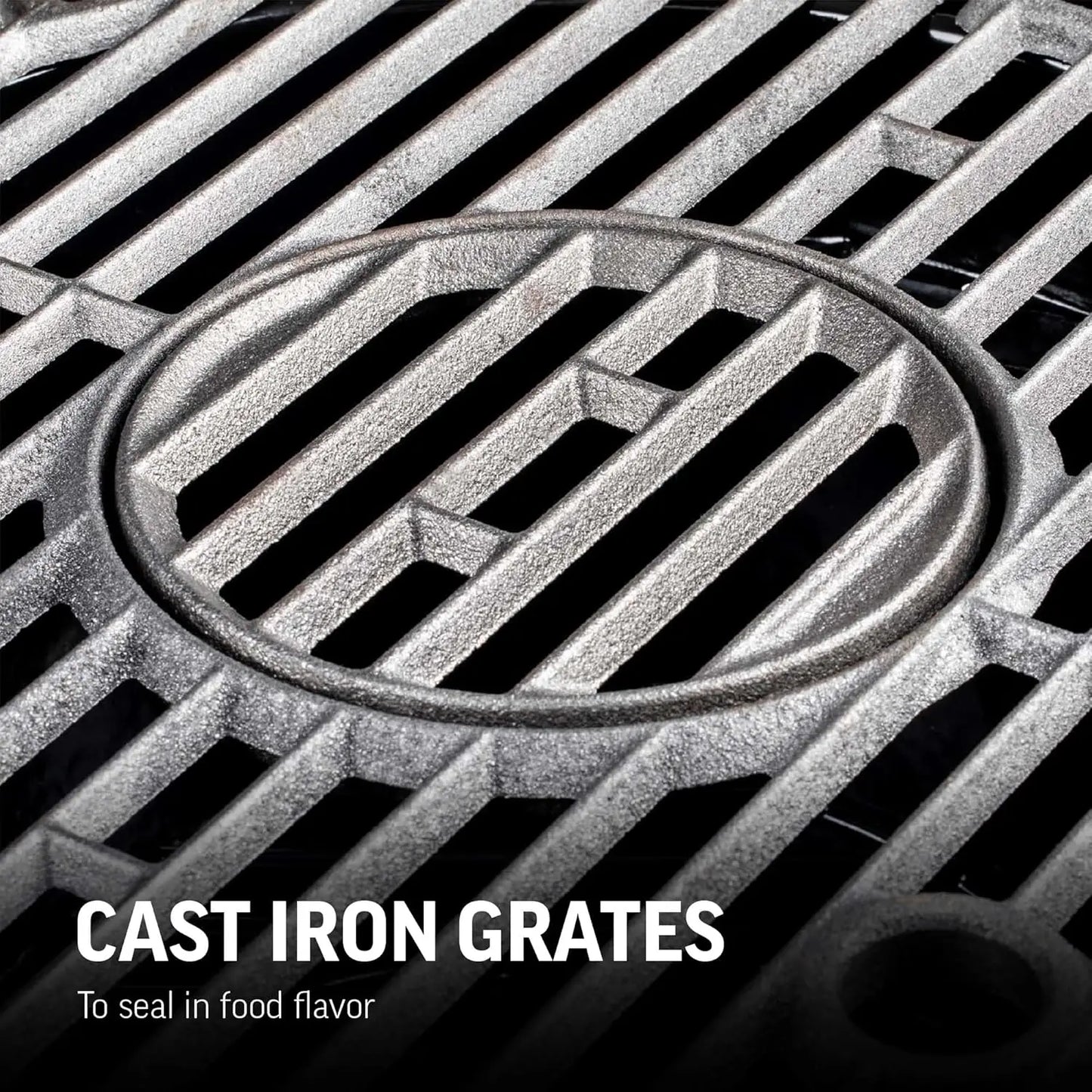 - Cast iron grates deliver durable heat retention for searing and even cooking across 155 square inches of cooking area, so you get perfect results from hot startup to steady low-and-slow temperatures.