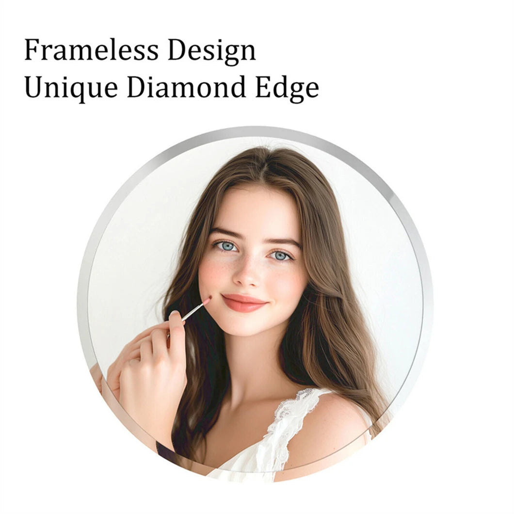 Elevate your space with this BORWART round frameless mirror, a beveled-edge centerpiece that amplifies light, adds depth, and delivers modern style in any bathroom, bedroom, living room, or entryway.