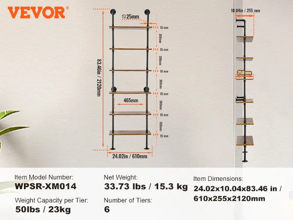 Elevate your space with SucceBuy Industrial Pipe Shelving—a bold blend of wood shelves and rugged metal pipes that keeps your living room organized and stylish.