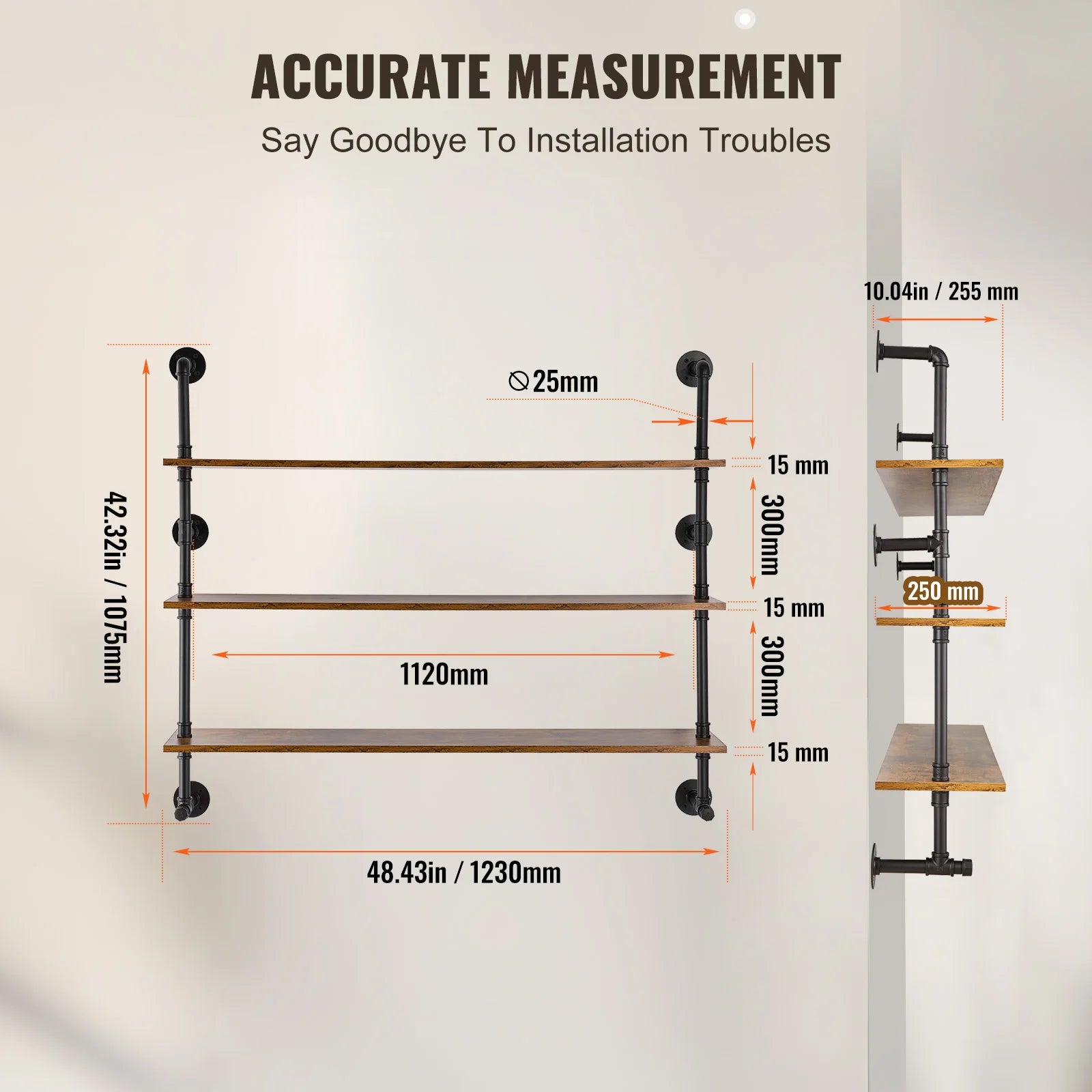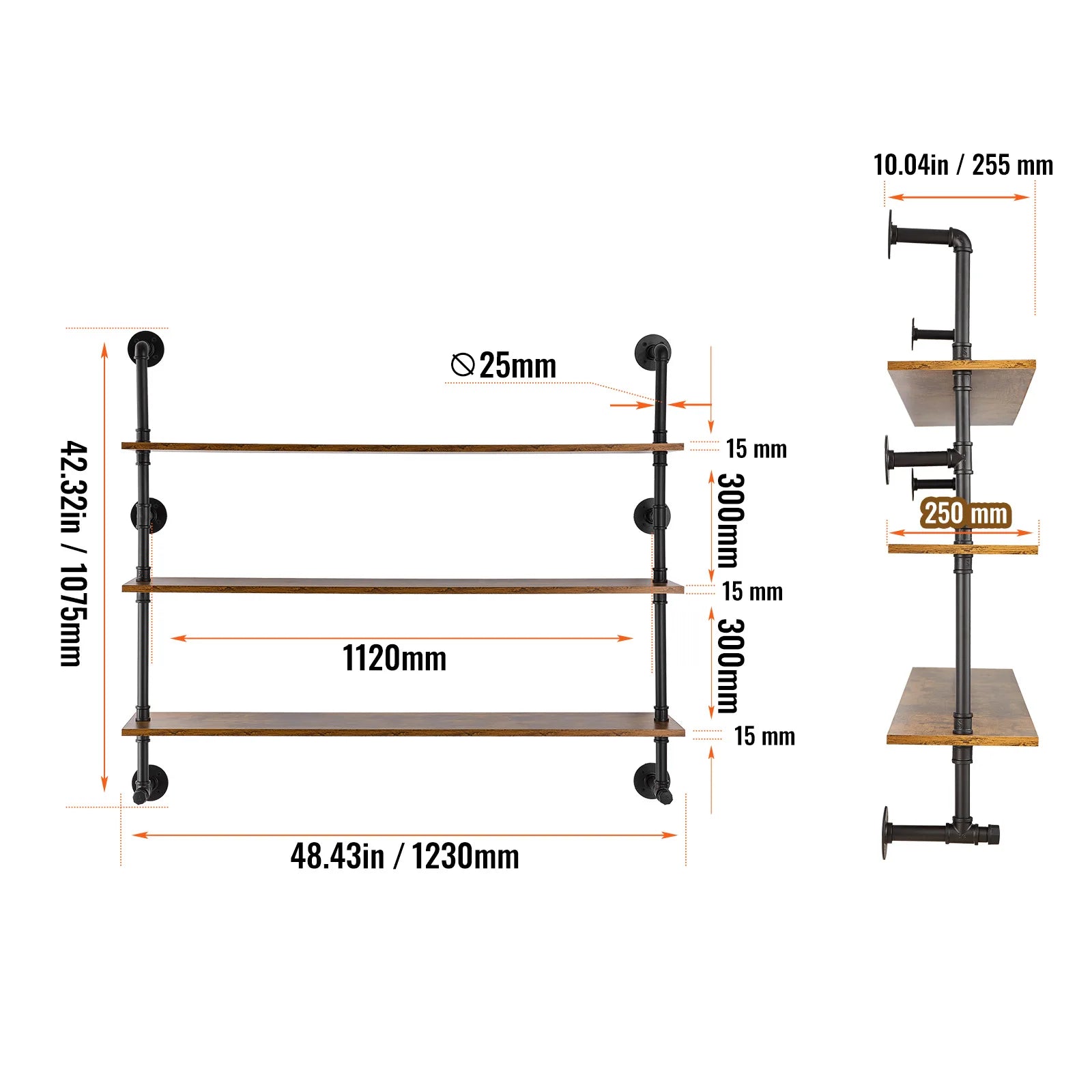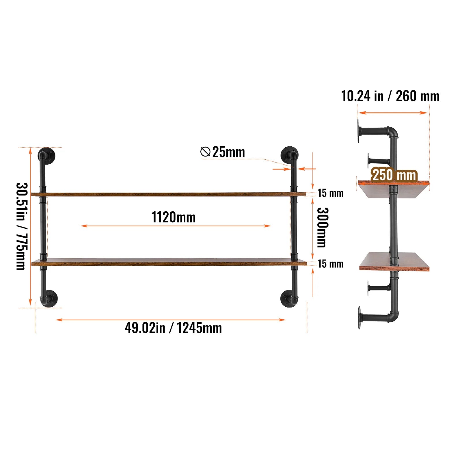 SucceBuy Industrial Pipe Shelving Wall Mount Wood Shelves