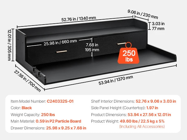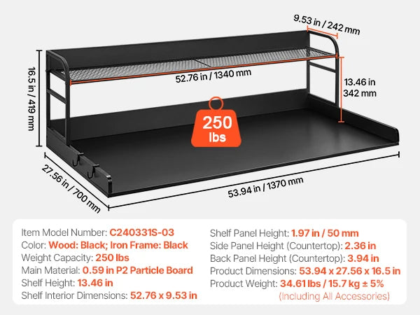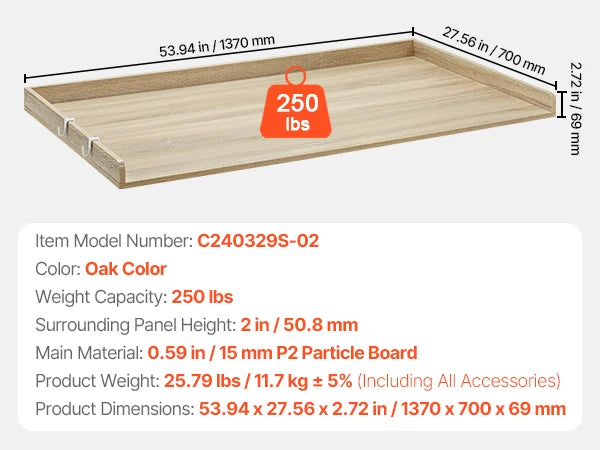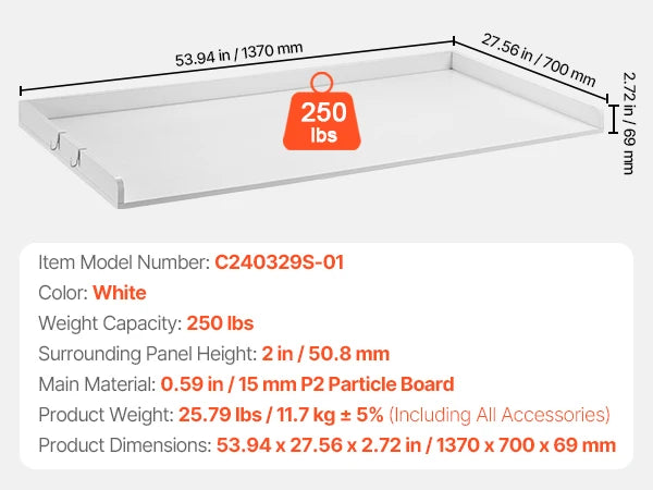- Spacious 54 inches wide by 27 inches deep provides ample room for folding, sorting, and organizing laundry tasks; built from heat-, water-, and scratch-resistant 15mm P2 CARB wood that supports up to 250 lbs.