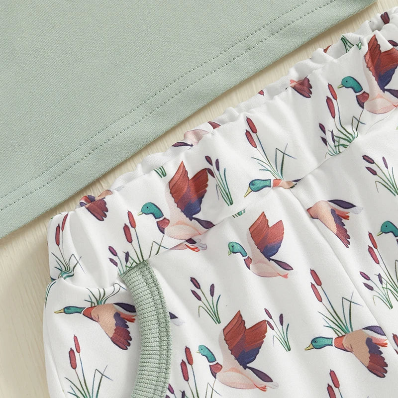 Brighten your little one’s warm-weather days with this playful two-piece set featuring duck embroidery on a comfy tee and camo shorts.