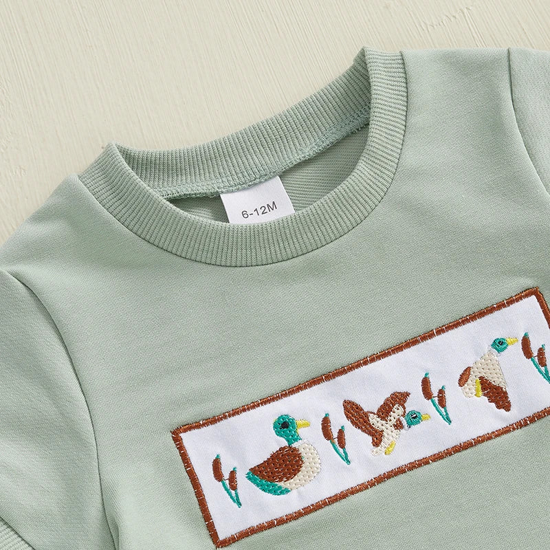 - Kid-friendly design: T-shirt features duck embroidery, short sleeves, and an easy pullover O-neck for quick dressing, ideal for morning rushes.