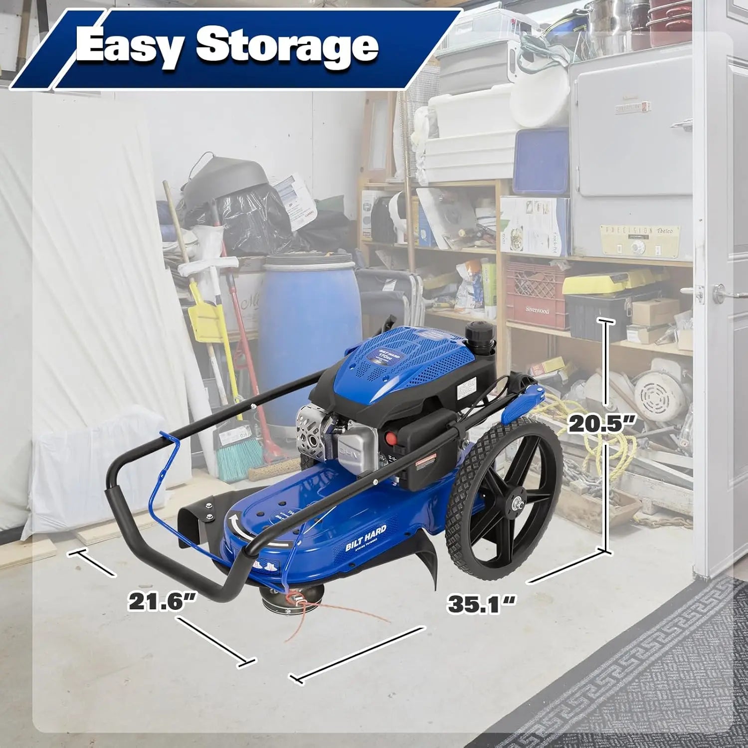 - 14-Inch Flat-Free Wheels provide smooth, stable movement over uneven terrain so you can trim with confidence around trees, slopes, rocks, and damp ground, reducing operator fatigue.