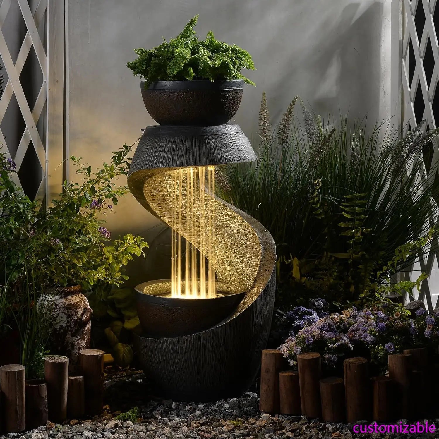 XMSJ Waterfall Fountain Outdoor Garden With Bowl Planter
