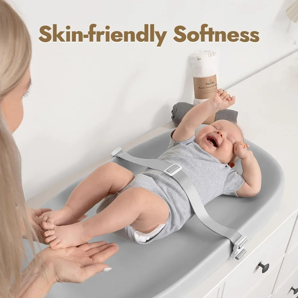 Keep diaper changes clean, safe, and simple with the Papablic Wipeable Baby Changing Pad, featuring a removable safety strap, quick-clean surface, and a compact profile that fits your daily routine.
