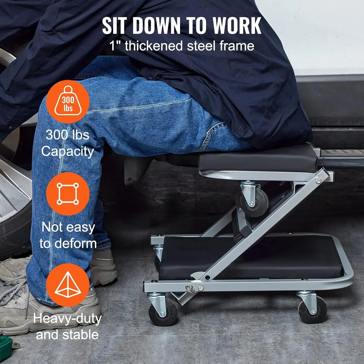 - All-in-one design: Easily convert from creeper to stool to reach under vehicles or work at low heights without stooping.